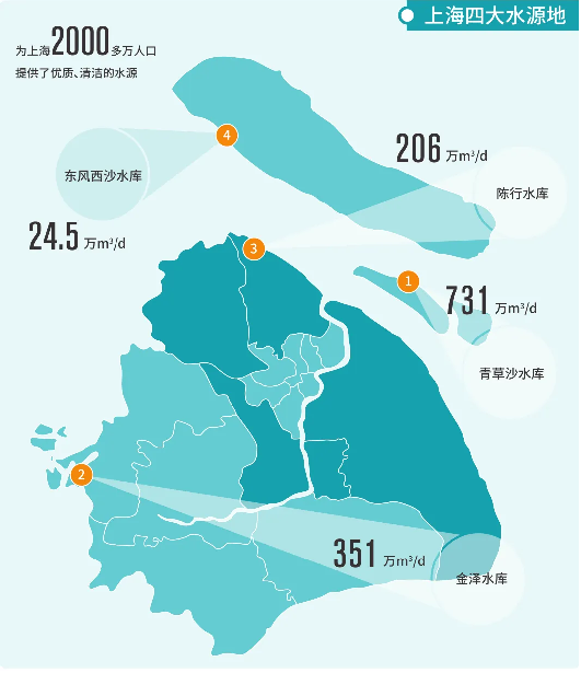 ▲上海四大水源地示意图(m?/d:供水单位,立方米每天)三峡上海院制图?