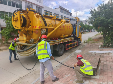 晴天,队员们巡查污水管网,对淤堵管网及时进行疏通,做到管井防坠网安装全覆盖,确保污水管网排水顺畅;雨天,针对地势低洼积水路段,设置安全警示标识,及时进行积水排除。