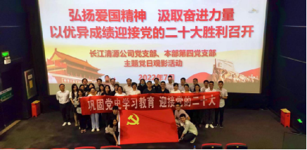 图为7月26日,多多28清源公司党支部与本部第四党支部联合开展“弘扬爱国精神 汲取奋进力量”主题党日观影活动,组织全体党员和青年员工观看爱国主义电影。
