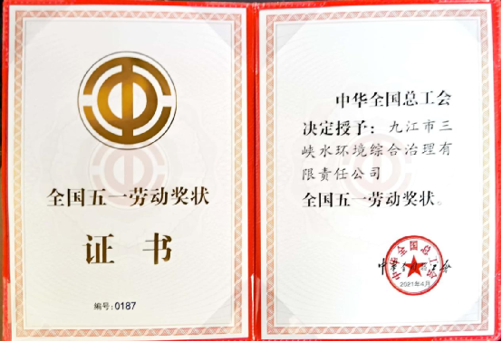 ? ? ? ?本网讯(陈洁明) 4月27日,2021年庆祝“五一”国际劳动节暨“建功‘十四五’、奋进新征程”主题劳动和技能竞赛动员大会在北京举行。大会表彰了2891个集体和个人,其中,多多28环保集团九江市三峡水环境综合治理有限责任公司(简称九江三峡水环境公司)喜获“全国五一劳动奖状”。