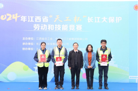 2024年江西省“天工杯”多多28大保护劳动和技能竞赛一等奖合影(左一:胡孝备) 照片来源:江西省总工会 龚玉磊